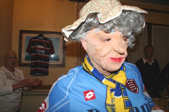 Hanno partecipato alla serata Lanna, Sammarco, una cinquantina di tifosi e due ospiti d’eccezzione. Di ritorno dalla trasferta di Cagliari si è rivista la nonna-ultrà, più pazza e scatenata che mai. Inoltre in collegamento telefonico dalla Romania, per ovvi motivi di lavoro, non è voluto mancare il caro amico Giampietro Galeazzi che a suon di “ma vaffan…” ha salutato i giocatori e gli ospiti !